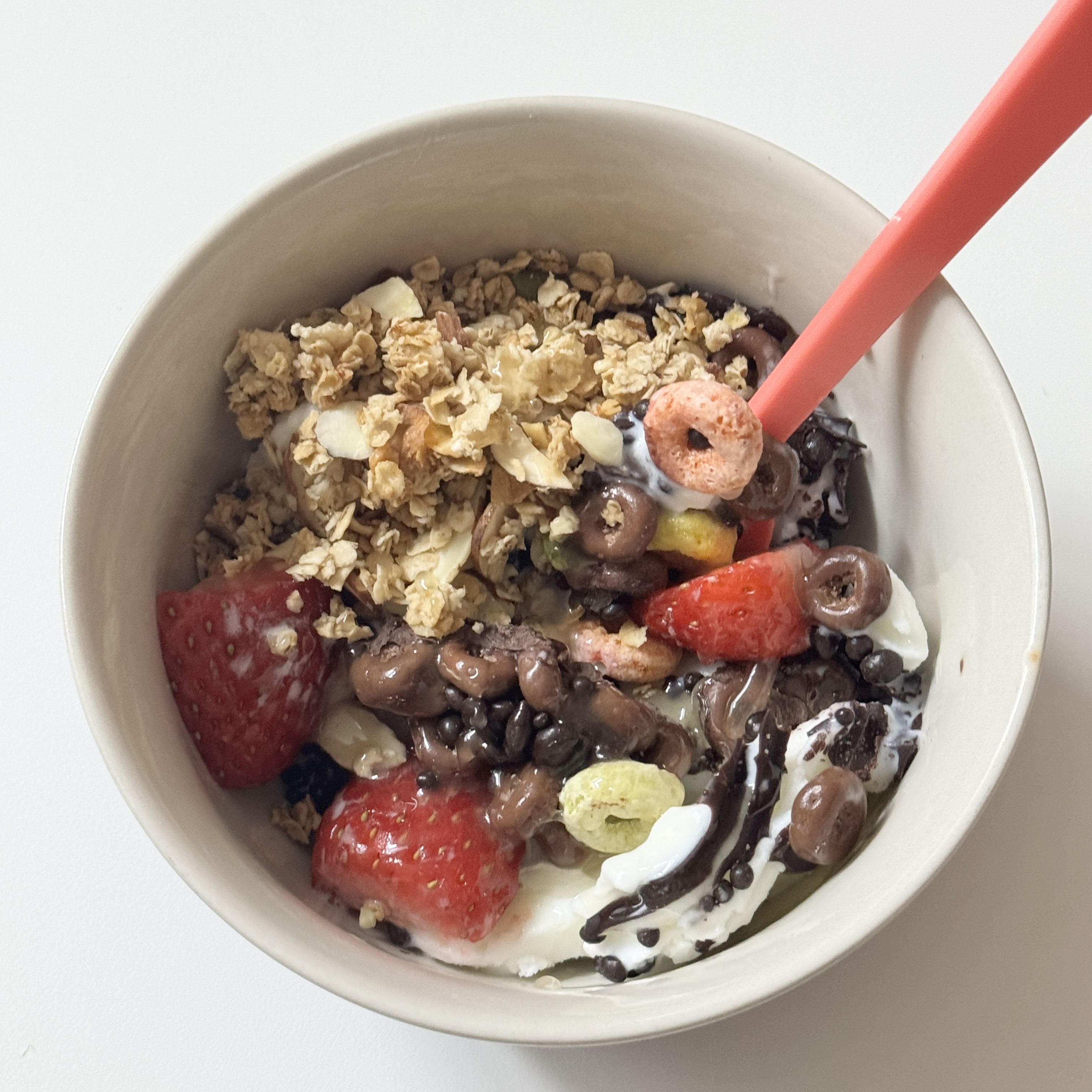 그래서 기본적으로 요거트아이스크림 + 초코쉘 + 비요뜨 초코링 + 초코팝팝